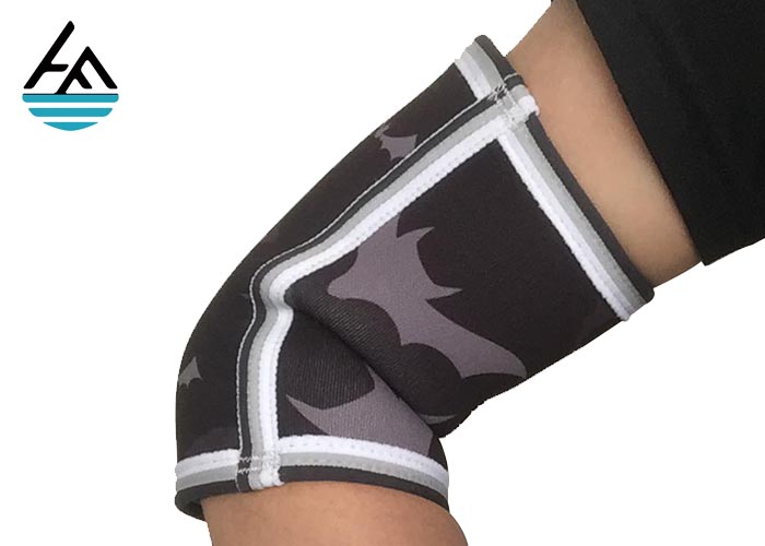 We make the elbow sleeve with neoprene(middle layer) and double sides fabric(outside and inside).